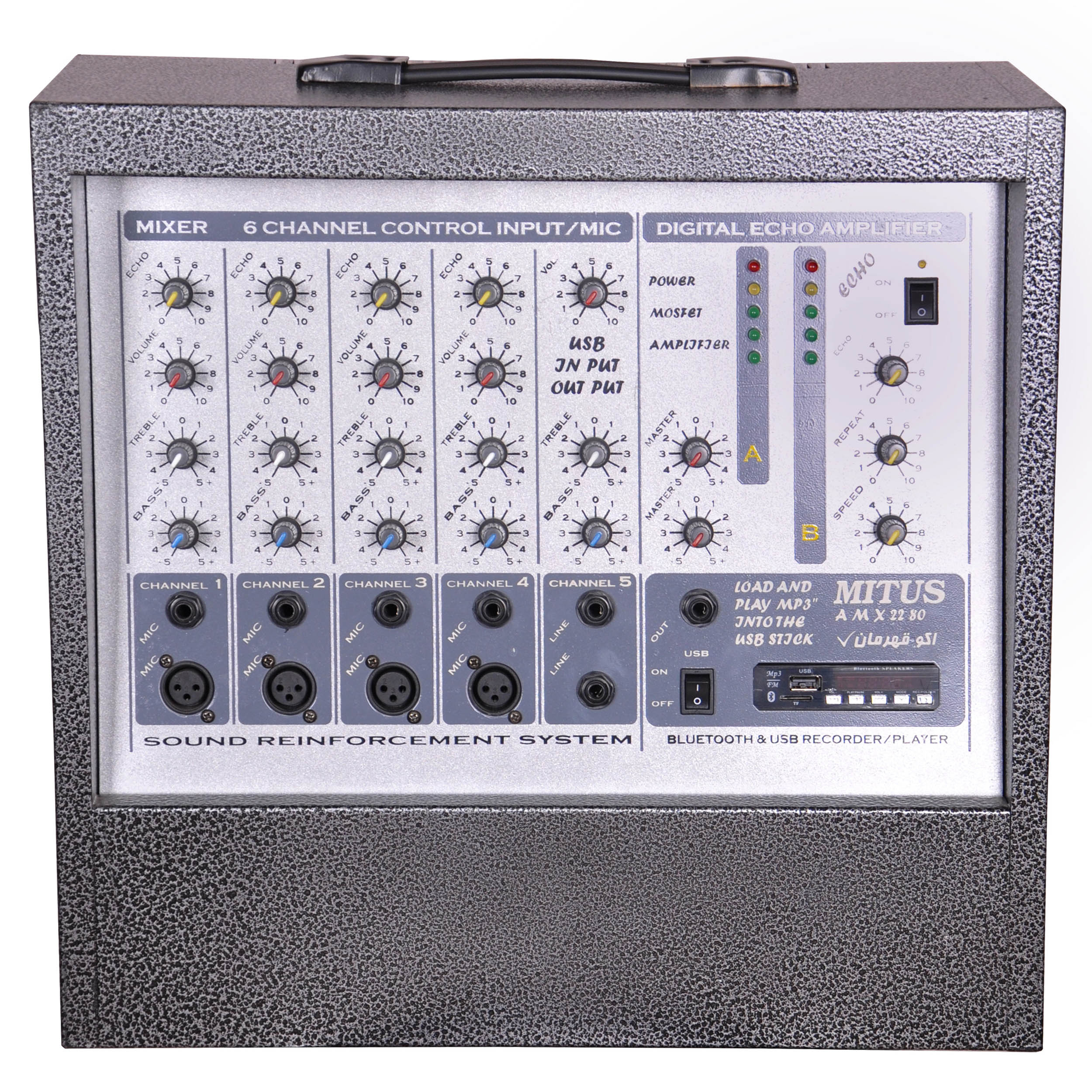 پاور میکسر قهرمان MITUS AMX 2280 یک سیستم صوتی حرفهای و کامل است که برای مدیریت و تقویت صدا در محیطهای آموزشی، مذهبی، سالنهای کوچک و متوسط، مراسم زنده، مداحی، اجرای موسیقی و برنامههای رسمی طراحی شده است. این مدل ترکیبی از یک میکسر حرفهای، آمپلیفایر قدرتمند، اکو دیجیتال، ورودیهای کامل و امکانات ضبط و پخش چندرسانهای را در قالب یک دستگاه جمعوجور ارائه میکند و از نظر کیفیت و کارایی از بسیاری مدلهای مشابه بهتر عمل میکند.